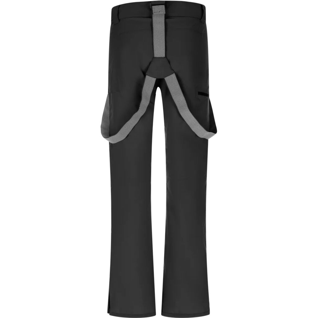 Materialet er vindtæt, behandlet med en PFC-fri DWR-finish og har kritisk tapede sømme for øget vejrbestandighed. Bukserne har to sidelommer, én benlomme, justerbar talje, snefang ved benene, lynlåse ved buksebenene og et aftageligt selesystem for en sikker og tilpasningsbar pasform.