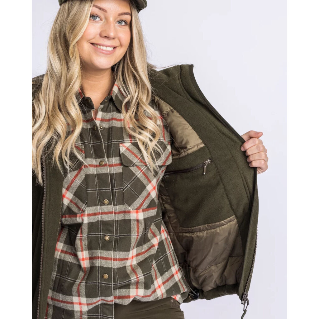 Pinewood Harriette Polstret Fleecejakke Dame Grøn/Ruskindsbrun