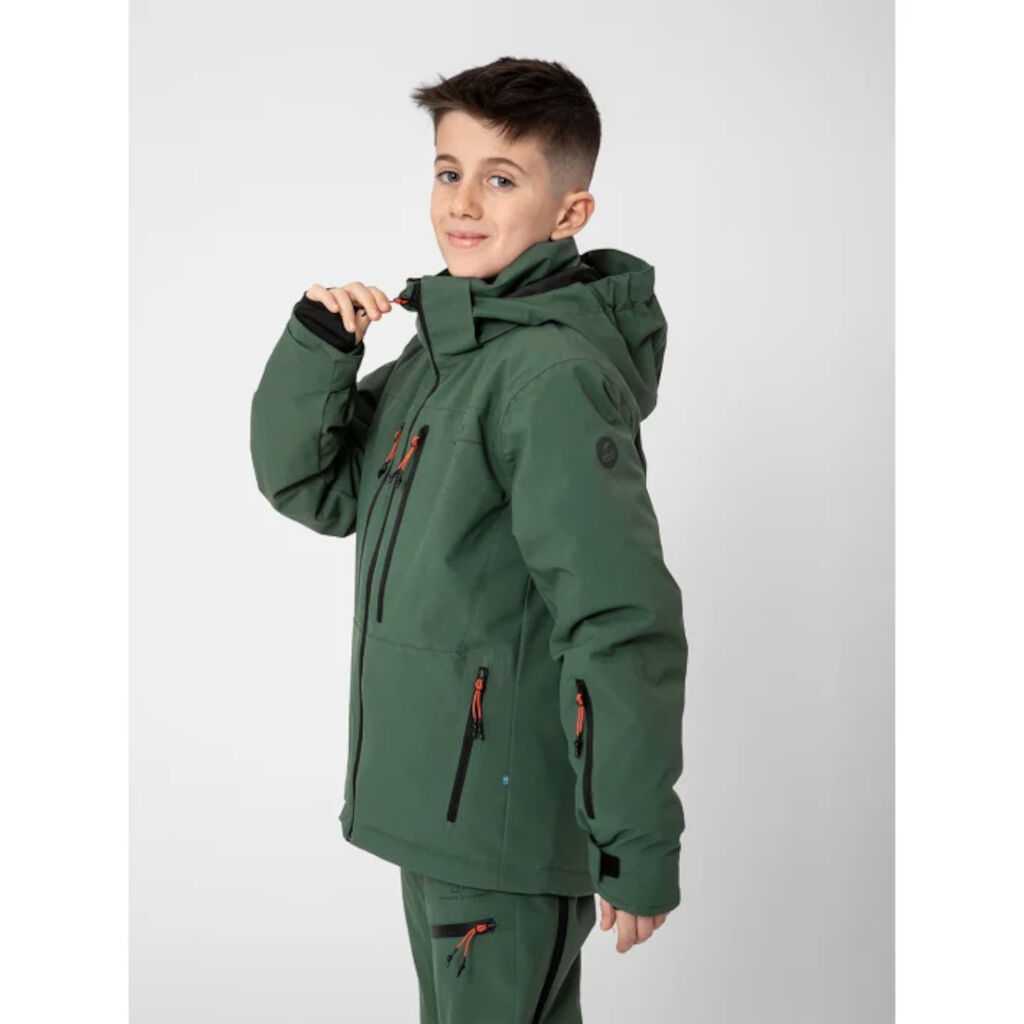 Vinterjakke fra 2117 udviklet til aktive dage på skibakken, men lige velegnet til skole eller udendørs leg i sneen. Jakken er vind- og vandtæt lavet af genbrugsmateriale i stretch med tapede sømme.