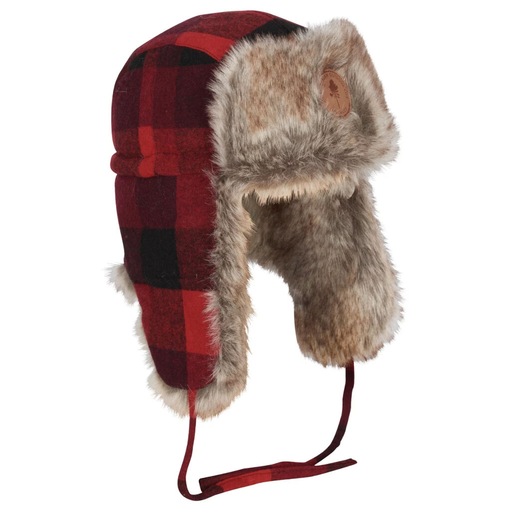 Vatteret vinterhue med blød syntetisk pels og øreklapper, der kan foldes op og bindes på hovedet. Kommer i et klassisk ternet mønster og har et diskret Pinewood logo foran.