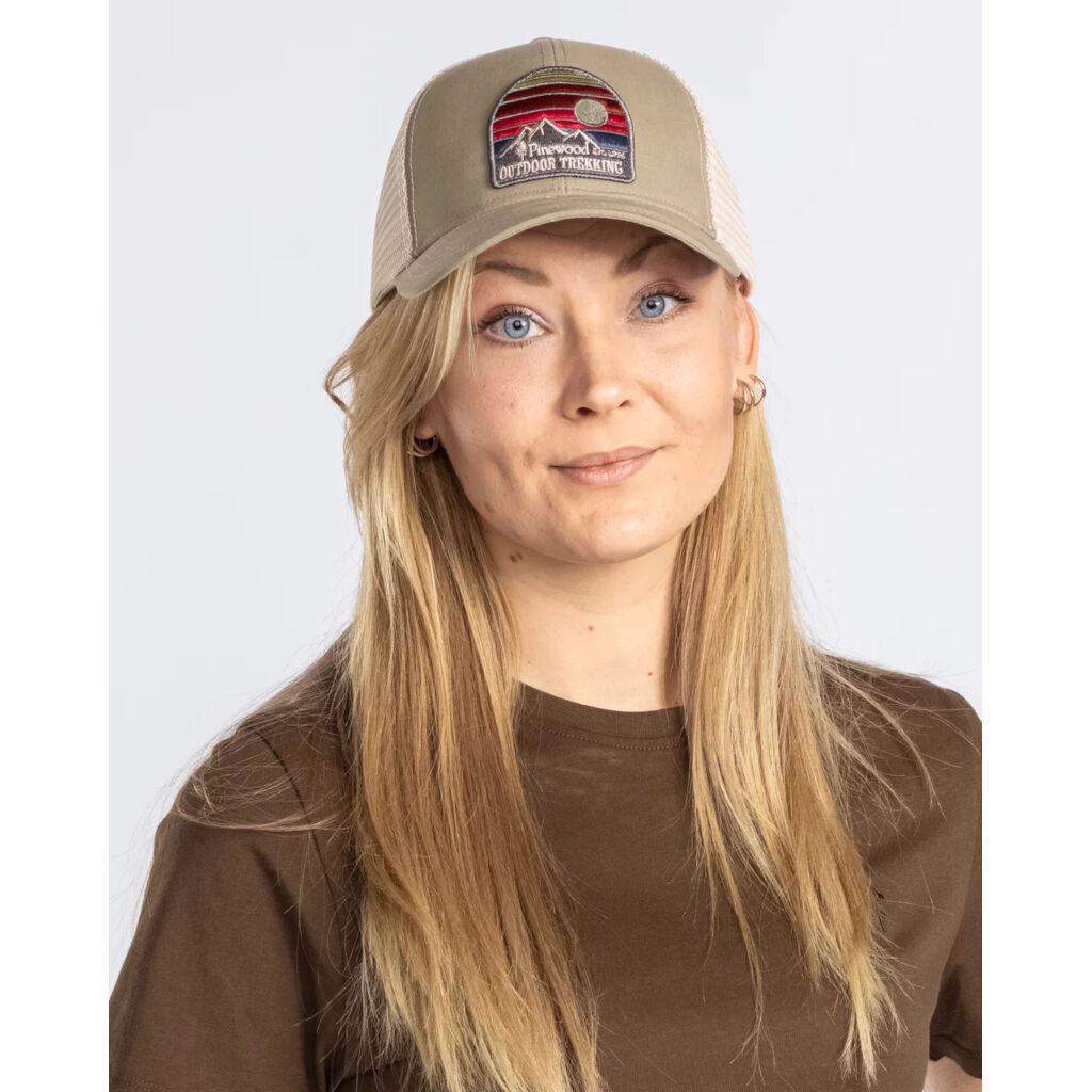 Truckerkeps med logo på framsidan och ventilerande mesh-tyg.