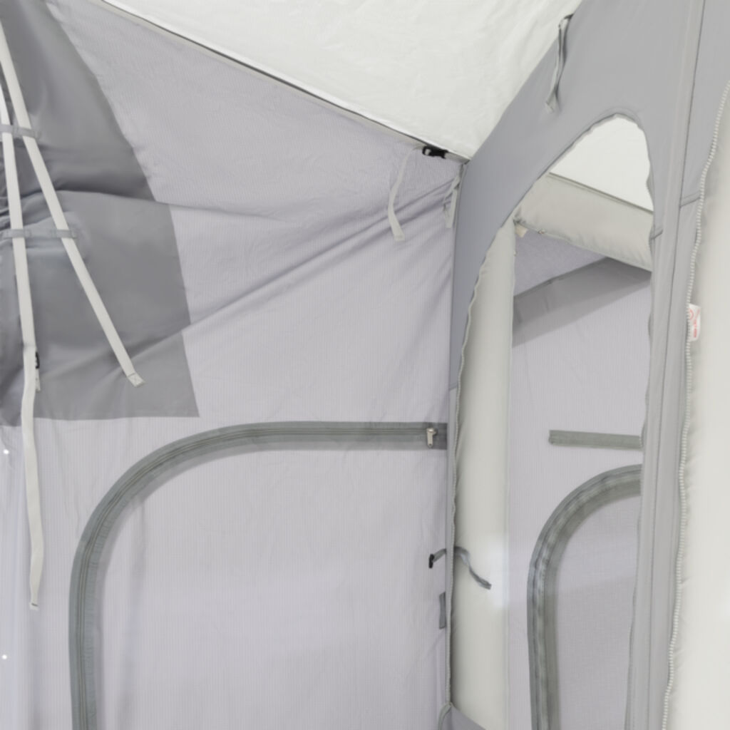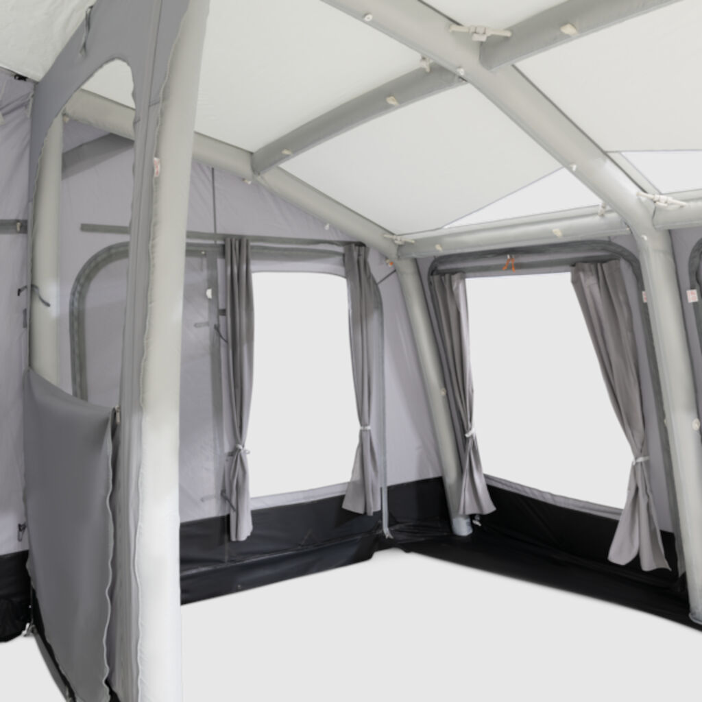 Dometic Rally Air Tour Drive Away 390 er et let og fleksibelt fortelt med luftkanaler, der er helt uafhængige. Det er således muligt at koble forteltet fra autocamperen og efterlade det selvstændige telt på campingpladsen til eventyr i byen. Teltet er ekstremt nemt at samle og opstille og kan takket være dobbelte kederlister passe til stort set alle markiser og lister på markedet. Bare fastgør teltdugen til listen på autocamperforteltet, sæt fire jordpæle i hjørnerne og pump de integrerede kanaler op i teltdugen, der danner rammen fra en ventil på teltet. Sæt derefter tætningen på autocamperen og teltet er klar til indflytning. Store vinduespartier rundt om teltet og i loftet giver godt lysindfald og en rigtig god udsigt. Både front- og sidepaneler kan åbnes op i teltet på varme dage.