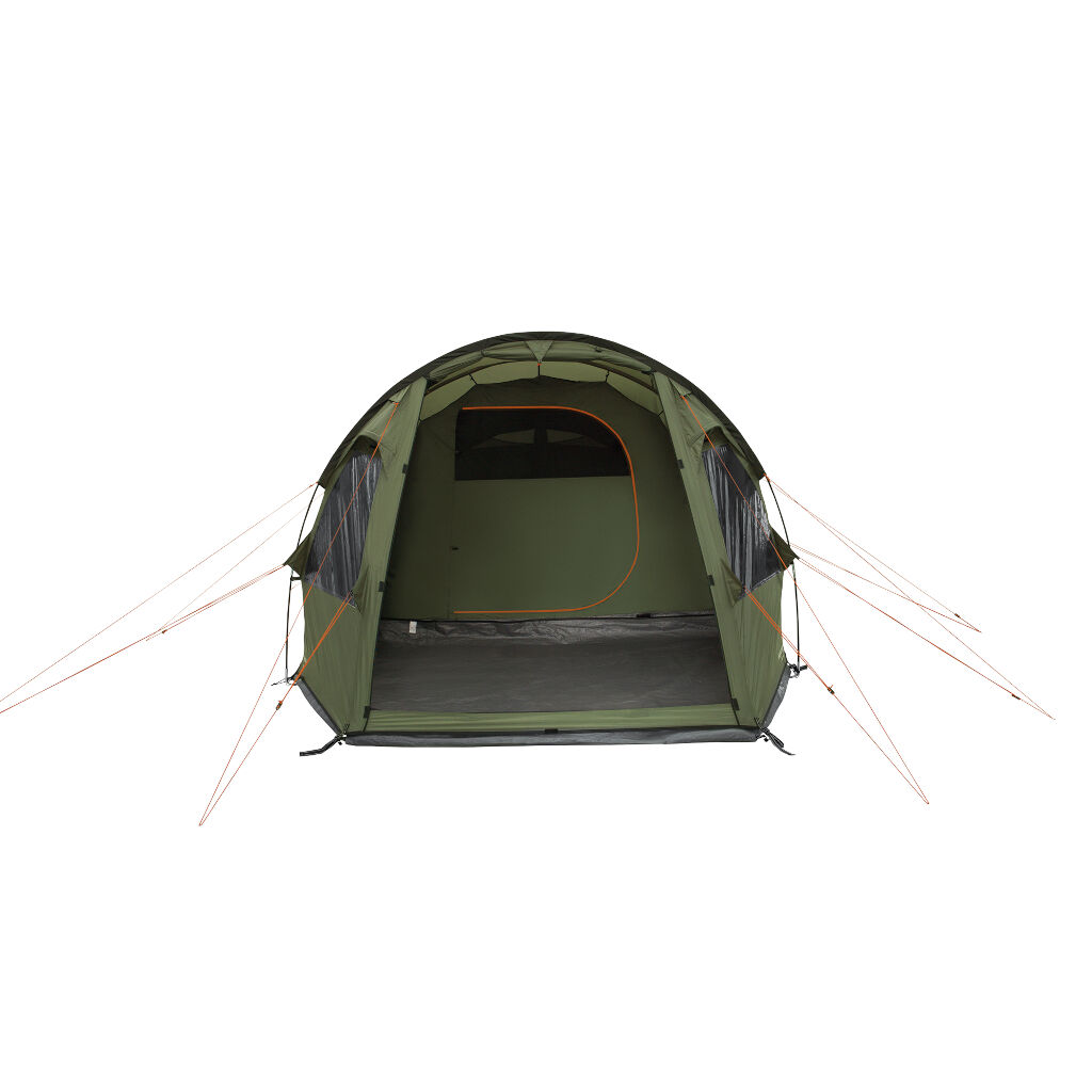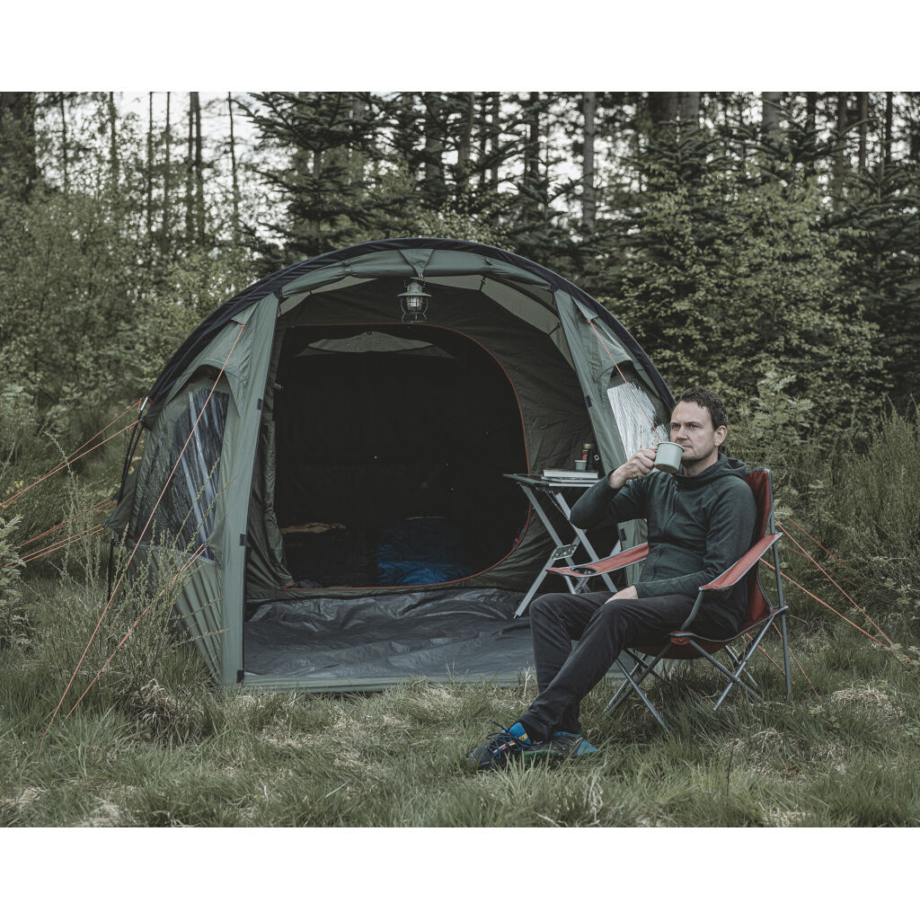 Hidra 4 er et rummeligt og prisvenligt 4-personers telt med ståhøjde i opholdsrummet, store vinduer og et aftageligt gulv i indgangspartiet for ekstra fleksibilitet. Teltet har en vandtæt dug med et vandsøjletryk på 3000 mm og tapede sømme for optimal beskyttelse mod regn.