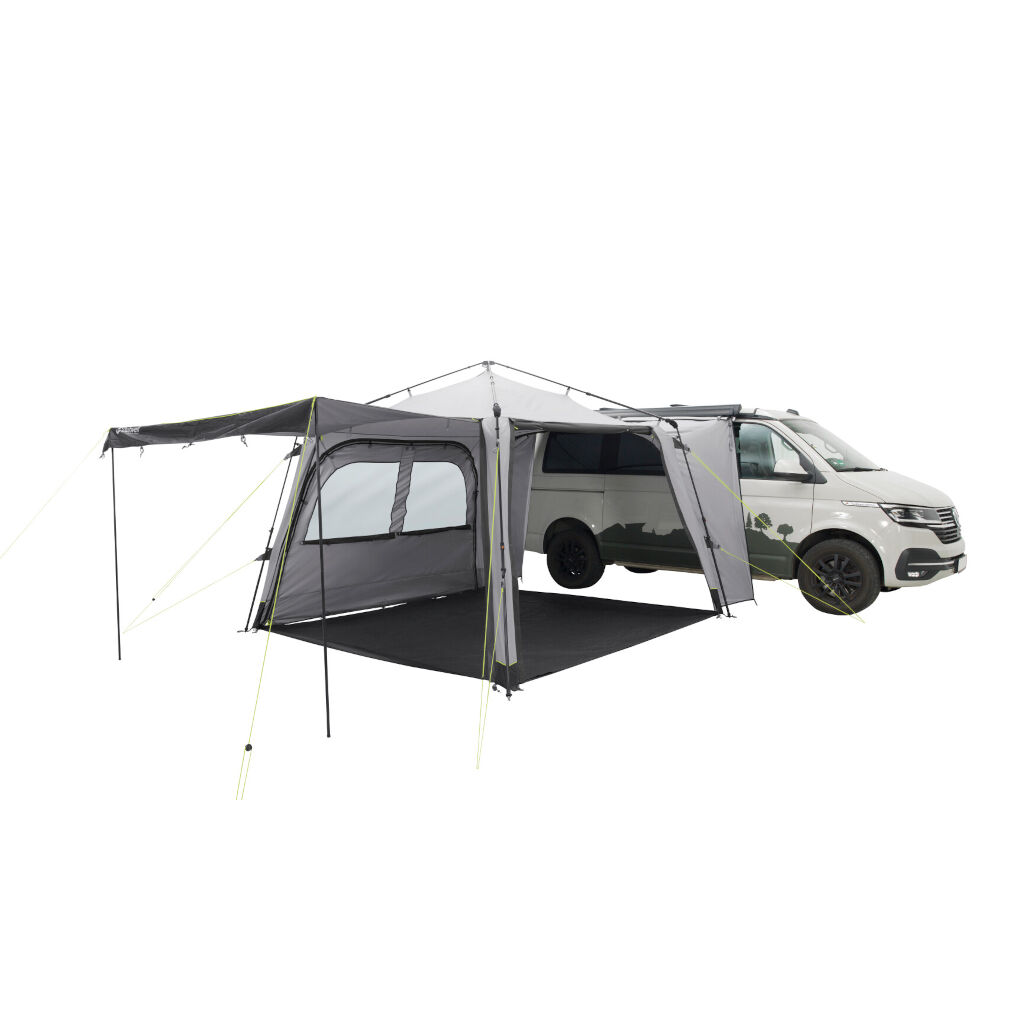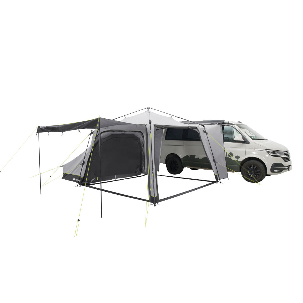 Flexibelt have telt med gulv, der takket være integrerede stænger kan opsættes meget hurtigt. Perfekt til at skabe et ekstra uderum ved siden af din autocamper, campingvogn eller familietelt. En smart funktion er, at det kan kombineres med både en sovekabine og en bilforbindelse.