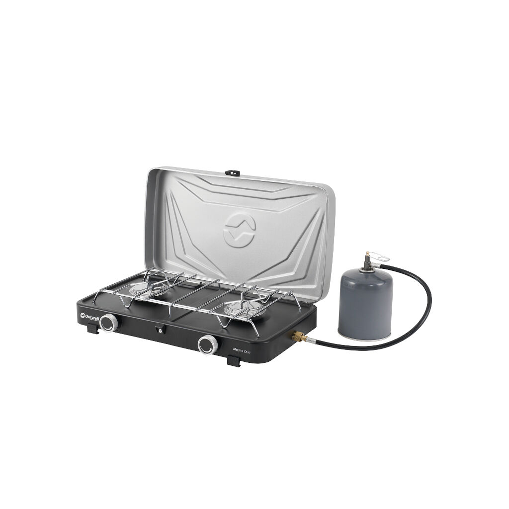 Outwell Mauna Duo er en prisvenlig gaskomfur til udendørs madlavning. Kraftfulde brændere med en effekt på 2 x 3000W i rustfrit stål og individuelt justerbare gasregulatorer for nem effektstyring. Komfuret bruger EN417-gængede engangsflasker for høj fleksibilitet.