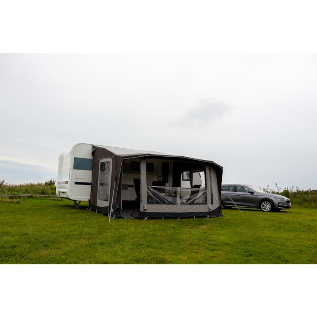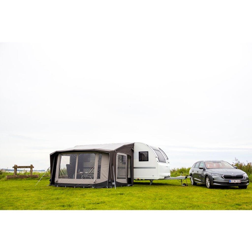 Telta Scenic 390 har to kederlister på 5 og 7 mm, hvilket gør det kompatibelt med både campingvogne og autocampere. Dobbelt lynlåse øverst på siderne gør det meget let at justere højden ved at åbne en eller begge lynlåse.