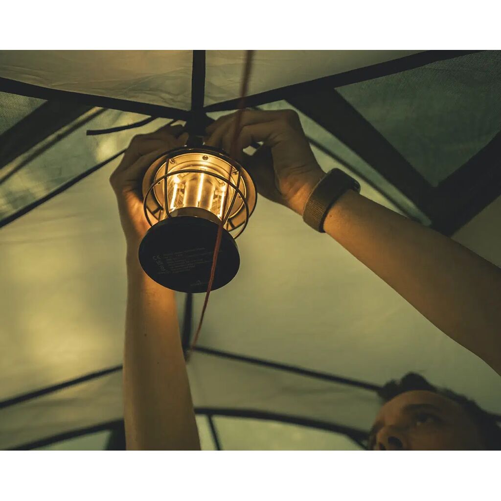 Kompakt og praktisk campinglampe i klassisk design med moderne funktioner. Lampen har et genopladeligt batteri, dæmperfunktion og flere farvetilstande. Leveres med en karabinhage til nem ophængning og opladningskabel (USB-C).