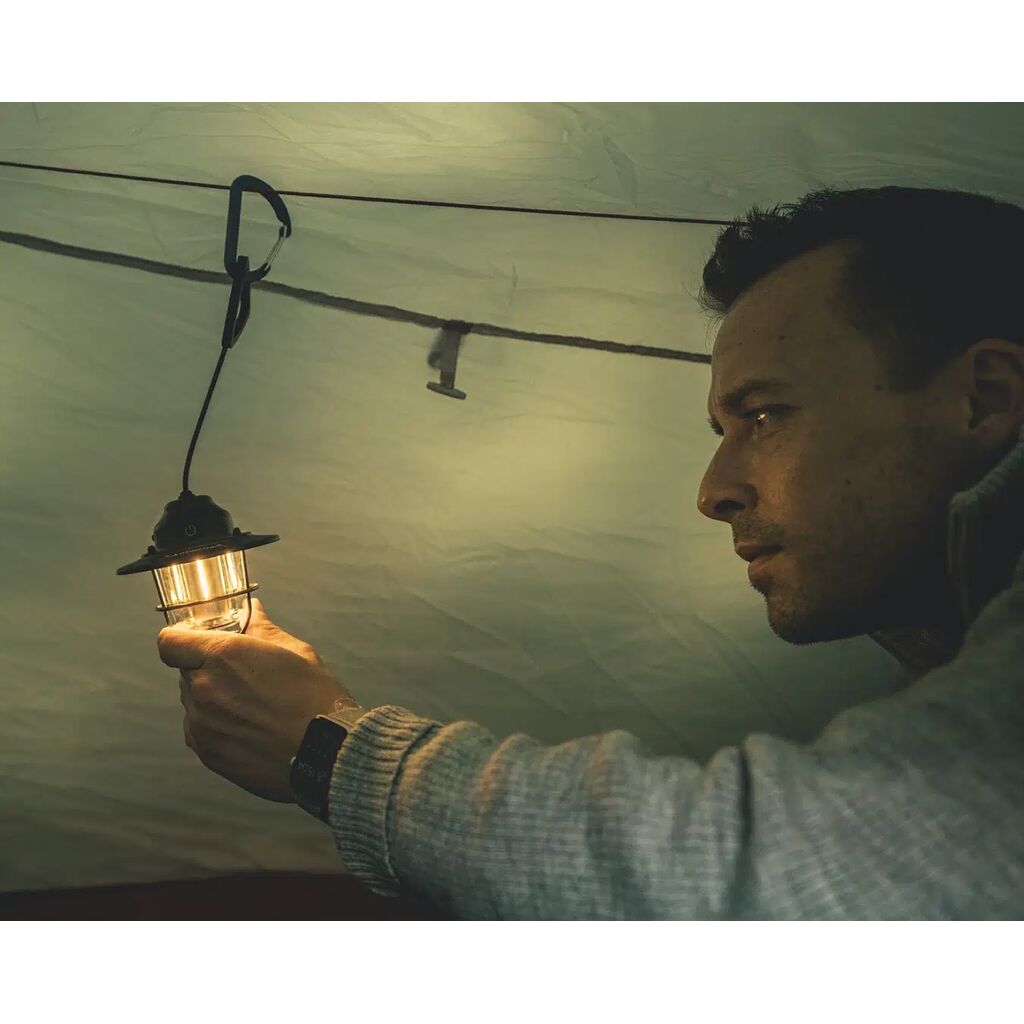 Kompakt og praktisk campinglampe i klassisk design med moderne funktioner. Lampen har et genopladeligt batteri, dæmperfunktion og flere farvetilstande. Leveres med en karabinhage til nem ophængning og opladningskabel (USB-C).