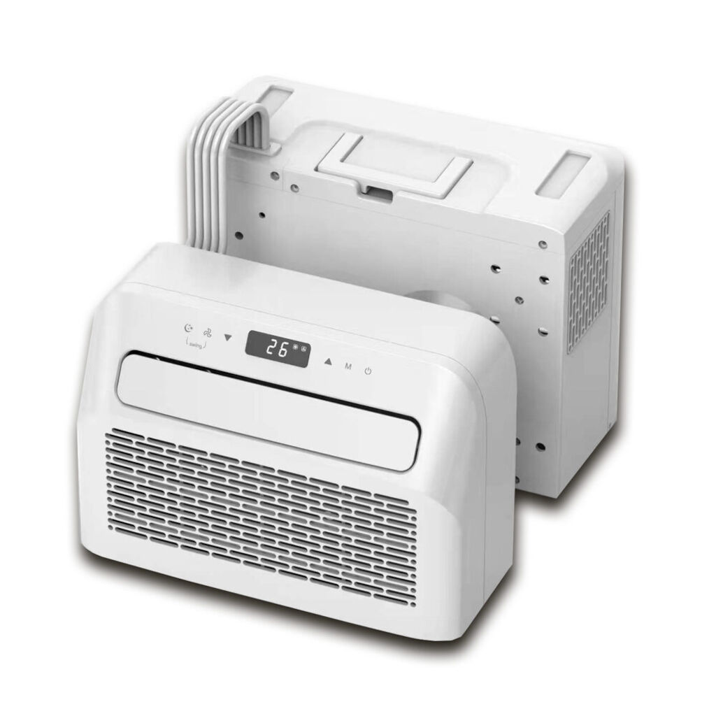 Portabel aircondition (AC) med god køleevne og nem installation, der kan få temperaturen ned i campingvognen, autocamperen eller dit fritidshus. Den bærbare AC fra Smart Living er en ""split-enhed"" med en udendørs og en indendørs enhed, der via en justerbar konsol gør installationen nem. Konsollen kan justeres for at passe til de fleste vinduer og køretøjer med en vindueskarm, der maksimalt er 55 mm. Med en veludstyret kølekapacitet på 5000 Btu kan airconditionen holde temperaturen nede på varme sommerdage og kan nemt styres via en app på din telefon eller på tastaturet på produktet.