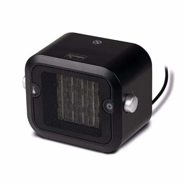 Liten smidig termostatstyrd värmefläkt från Kampa Dometic med två värmelägen för tält och förtält. Tippskydd och överhettningsskydd som automatiskt stänger av fläkten ifall den tippar eller täcks över. Går även köra utan värme för att kyla tältet.