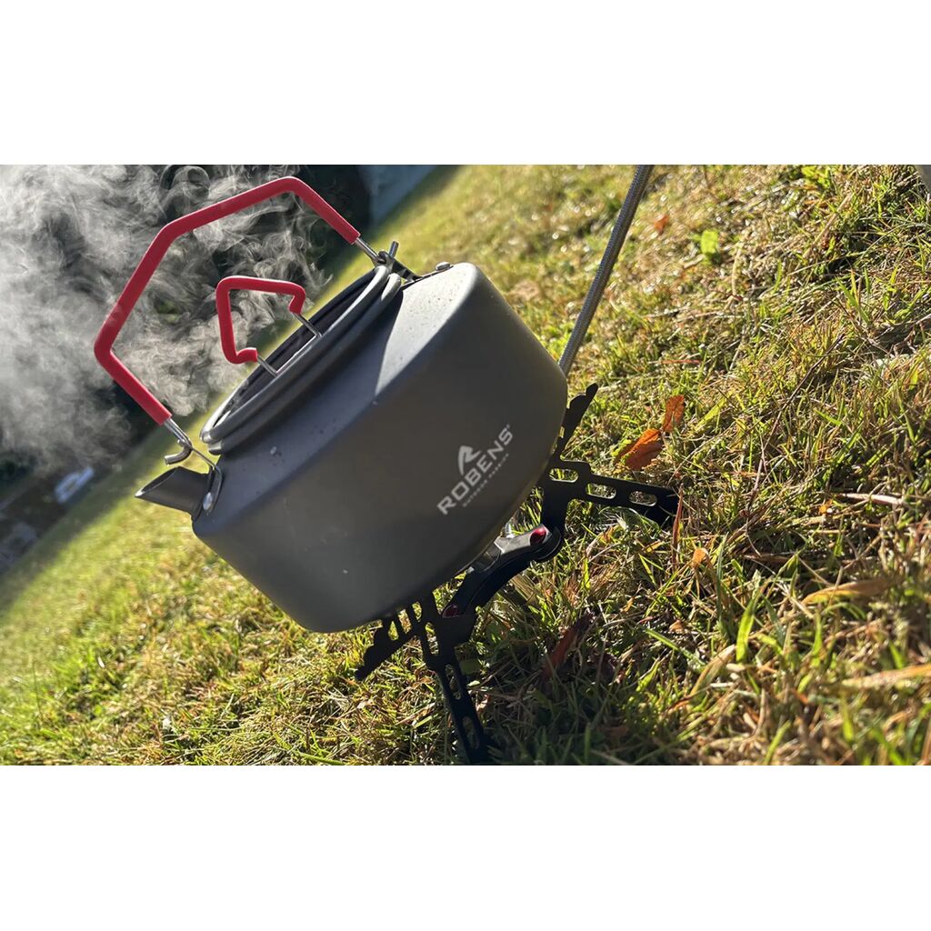 Let, stabilt gaskøkken med fritstående brænder, der også egner sig til større gryder og pander. På grund af de justerbare ben og pandeholderen er den perfekt til ujævne overflader. Den store disk giver brænderen en bedre effekt.