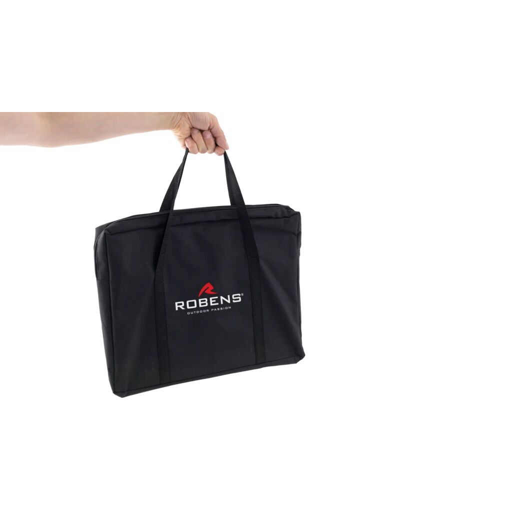Robens Lassen L er en større grillrist med ben i rustfrit stål. De sammenklappelige ben giver en god pakkestørrelse, og risten leveres med en taske, der gør transport nemmere.
