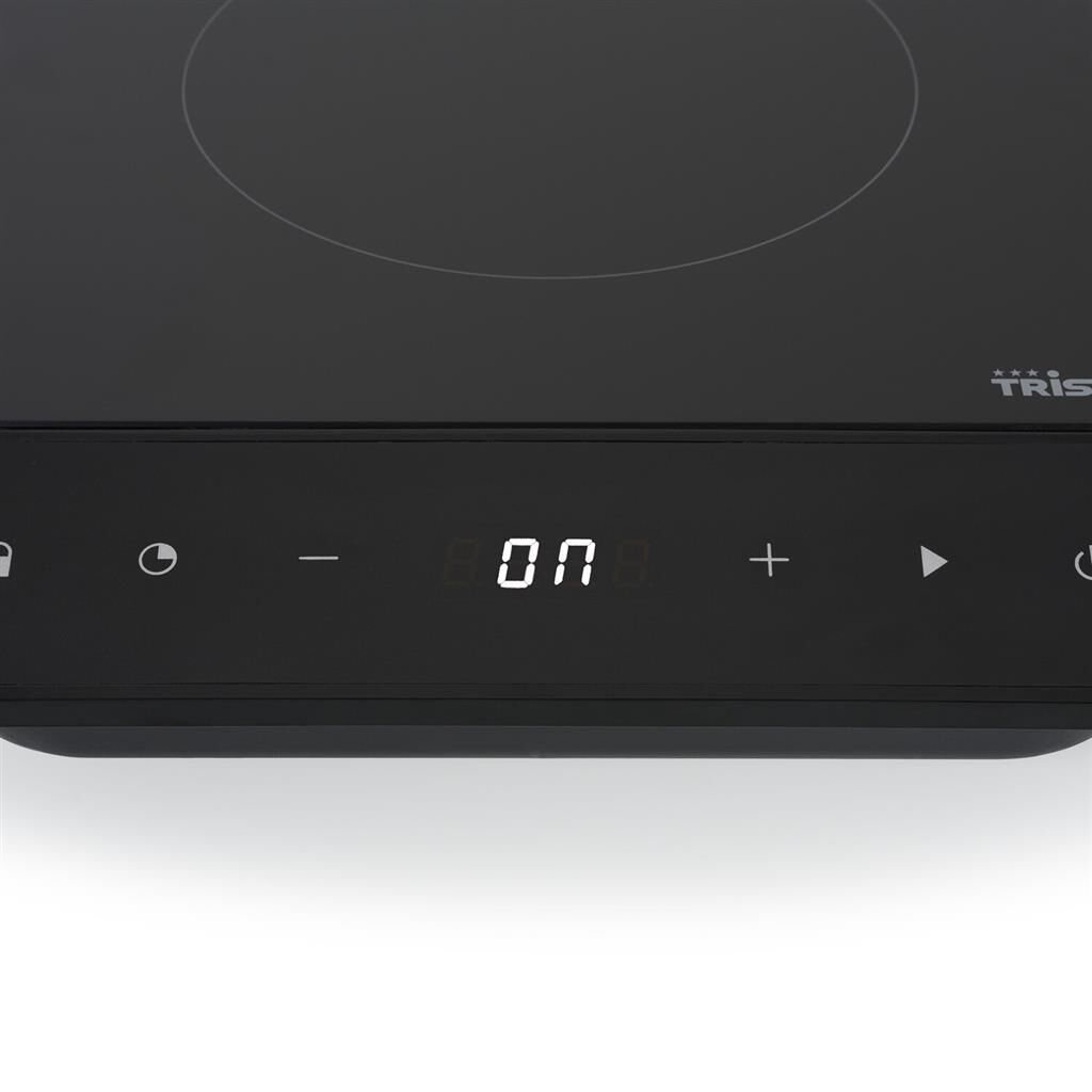 Induktionsplade på 2000W med 1,2 m standardstik (230V) og et enkelt digitalt display. Touchkontroller gør den nem at bruge og rengøre. Skridsikre fødder, sikkerhedsglas og andre sikkerhedsfunktioner gør den sikker at bruge på campingturen.