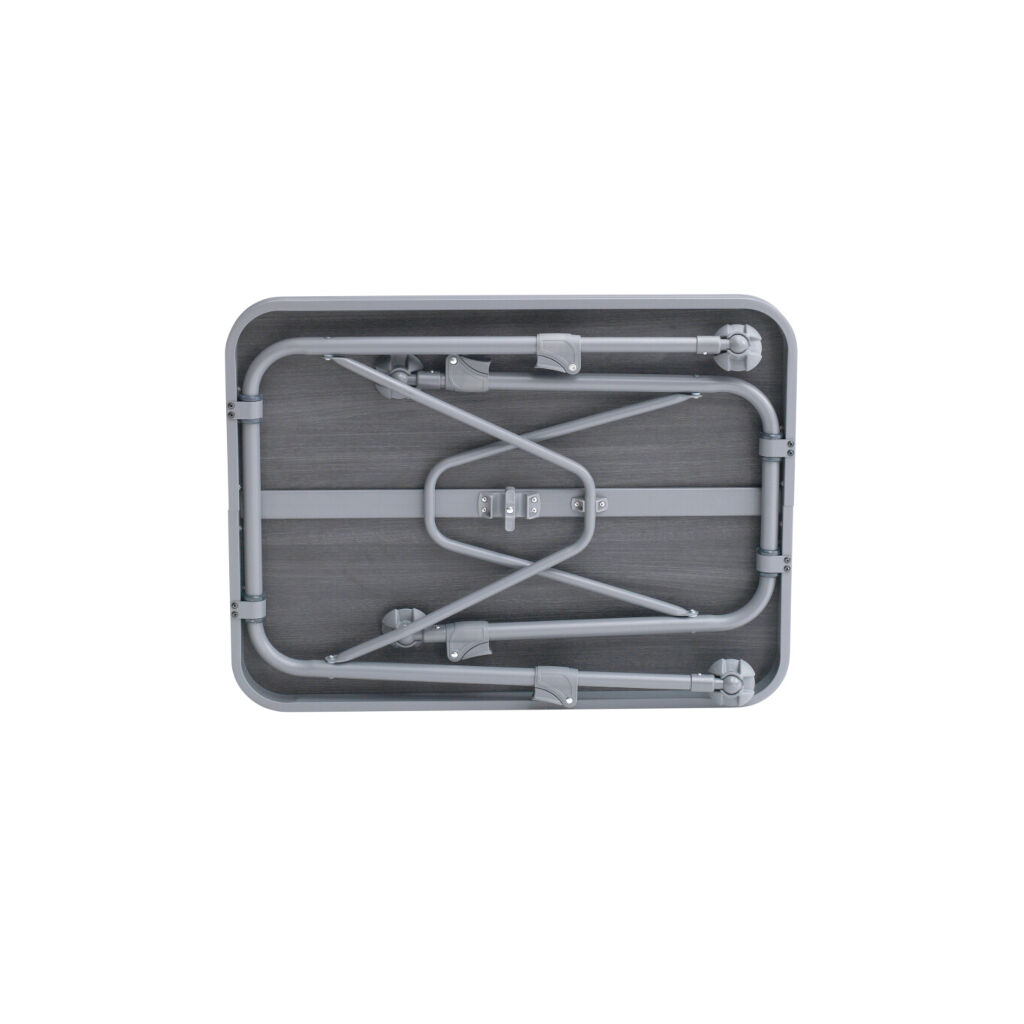 Meget slidstærkt sammenklappeligt campingbord med vejrbestandig plade, der også er både UV- og varmebestandig. Skiven gør, at lejrbordet kan bruges til spisning, tilberedning og madlavning. Ønsker du at forlade bordet udenfor i løbet af natten, er der ingen problemer uanset vejret. Hvis der er ujævnheder i jorden, kan benene også justeres for at skabe stabilitet. Bordet er foldbart, så benene er foldet ind under bordpladen.