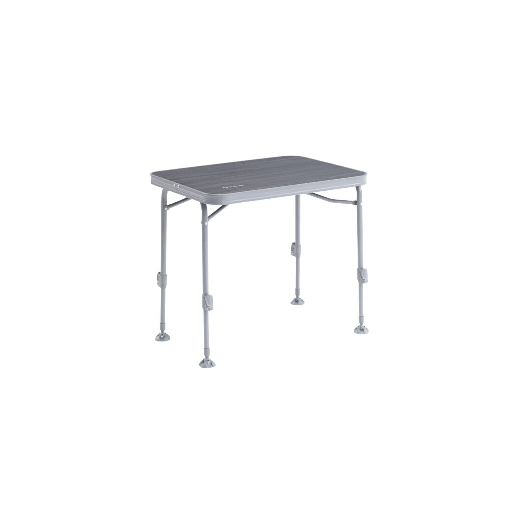 Mindre, men meget stabilt campingbord til 2 til 4 personer. Bordet kan tåle både vejr og ujævne overflader takket være en vejrbestandig bordplade og fire justerbare ben med store fødder. Bordpladen gør, at bordet kan stå ude i al slags vejr uden at risikere skader. Det er også varmebestandigt, så bordet kan også bruges til madlavning.