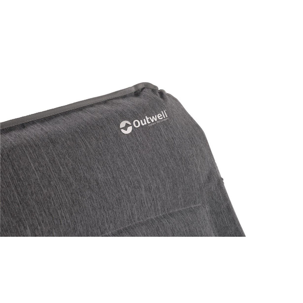 Campingstol fra Outwell med højt ryglæn og meget blødt og slidstærkt stof med polstring. Den bløde polstring og et ryglæn med syv positioner giver god komfort både ved spisebordet og i solen. Et kraftigt stel i pulverlakeret aluminium gør, at stolen har en maksimal belastning på 150 kg. Stolen leveres med 3 års garanti.