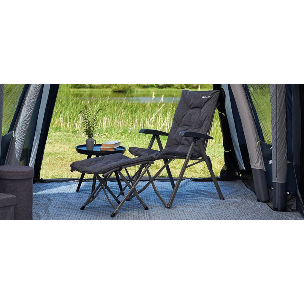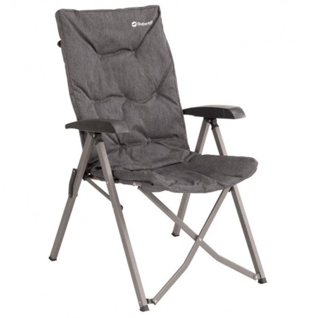 Den alsidige klapstol Outwell Yellowstone Lake kombinerer en velpolstret sæde og ryg med en smart pulverlakeret stål- og aluminiumsramme. Den har spisebordshøjde og kan, takket være fire justerbare ryglæn, også bruges til afslapning sammen med fodstøtten Outwell Trinity Lake. En mesh-lomme på bagsiden er perfekt til opbevaring af personlige ejendele.