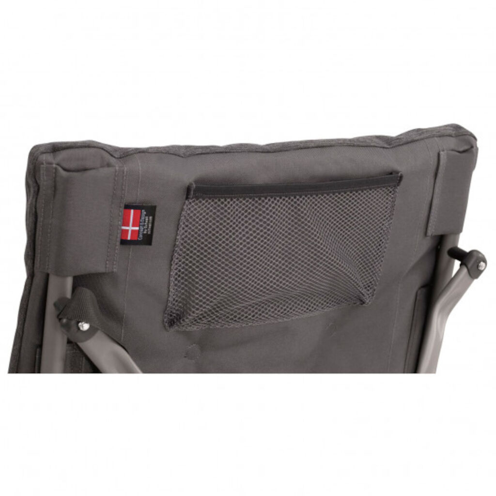 En polstret stol med fire positioner, velegnet til både måltider og afslapning. Høj ryg for god nakkestøtte, komfortable armlæn og en mesh-lomme. Let, nem at folde sammen og leveres med bæretaske. Tykk polstring giver god isolering og en blød siddekomfort.