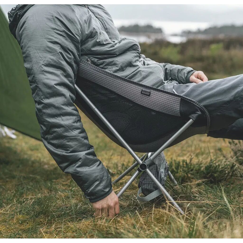 Pakvenlig stol med ekstra bred siddeflade, til camping og friluftsliv. Robust stålramme og åndbare meshpaneler.