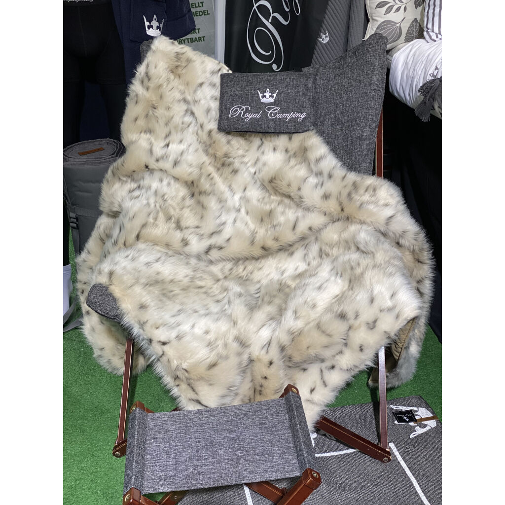 Realistisk plaid, der ligner en sneleopard. Perfekt til campingstolen, sofaen eller sæderne i autocamperen.