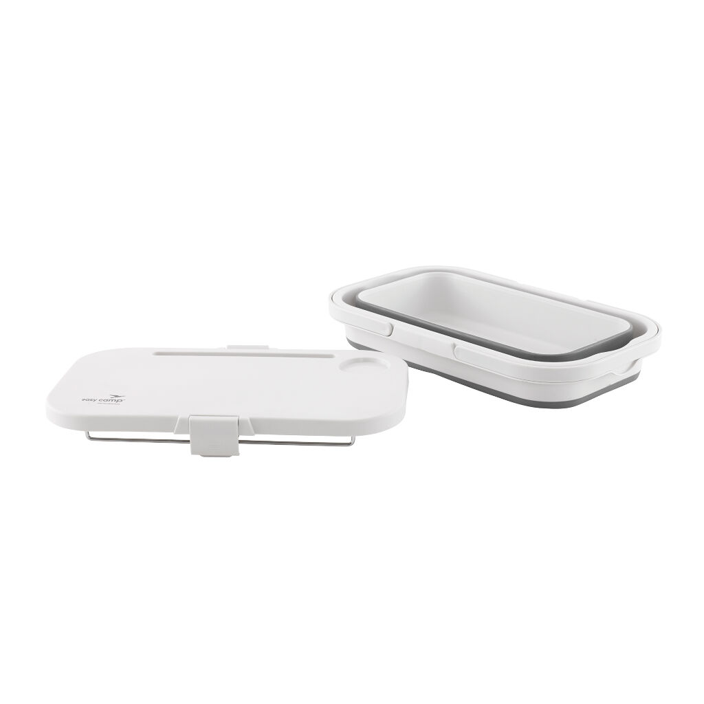 Praktisk picnickurv, hvor låget også fungerer som et bord. Takket være lågets dobbelte anvendelsesmulighed får du en stabil overflade til at placere mad og drikke på. Låget har også en simpel låsemekanisme, så det holdes på plads på kurven under transport.