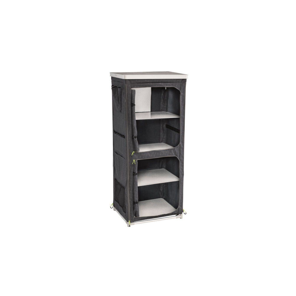 Organiser tøj og udstyr i dette høje, men også pakkevenlige skab fra Outwell med smarte opbevaringsmuligheder selv udvendigt.