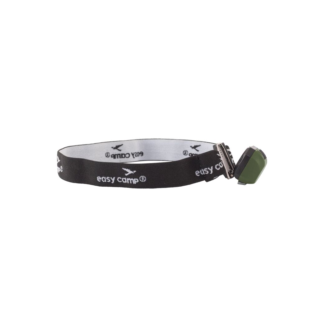 Enkel pandelygte i superkompakt format med justerbart pandebånd. Lampen drives af CR2032-batterier og har to lysindstillinger, tænd og sluk.