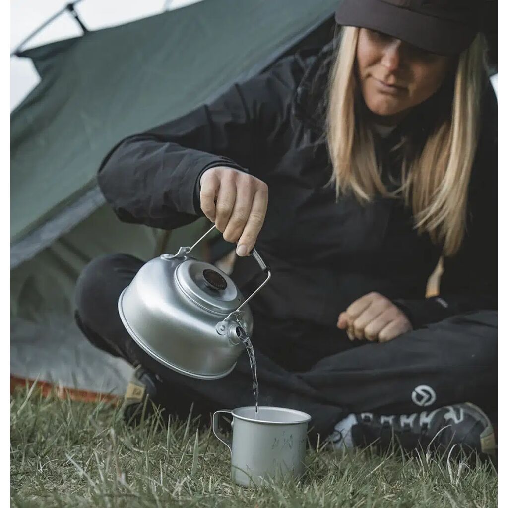 Aluminiumkande med en kapacitet på 0,9 liter, som kan bruges til både kaffe og te. Tesil medfølger.