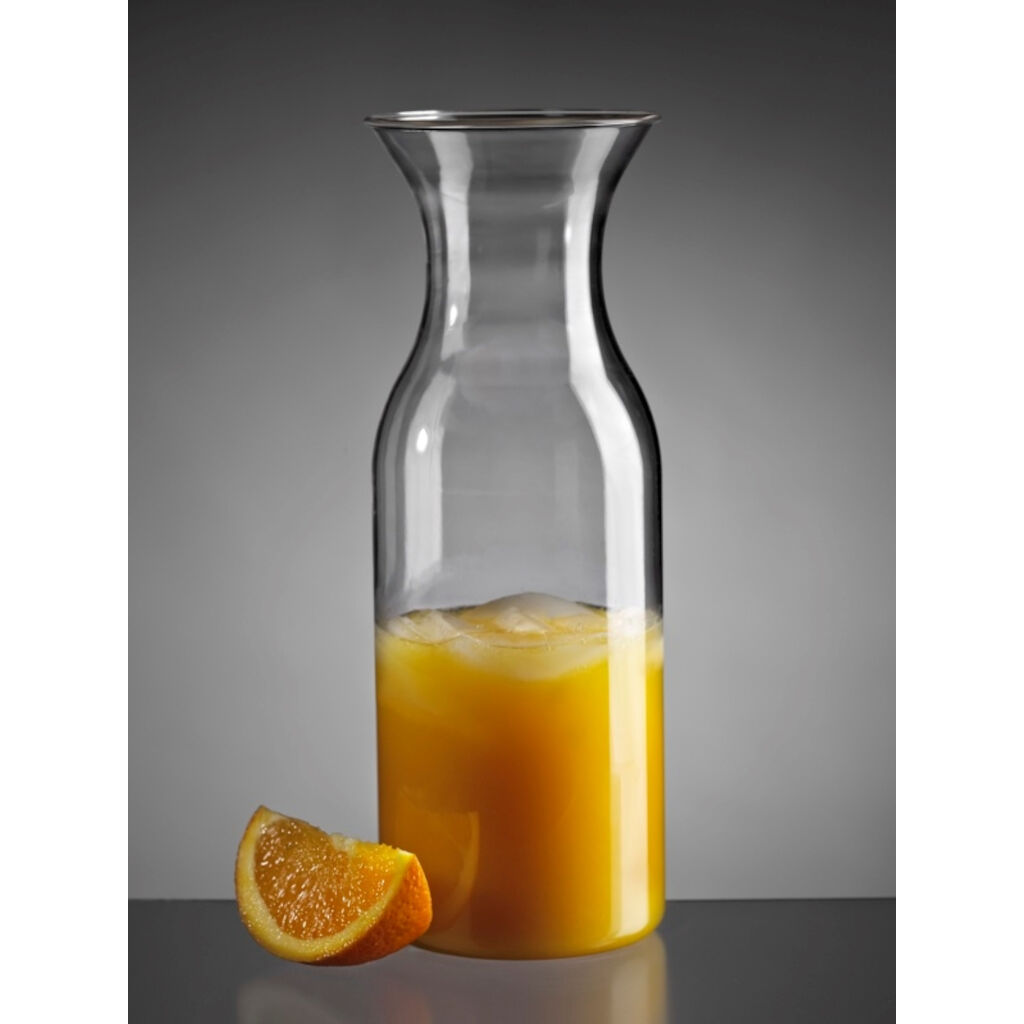 Karaffel på 1 L lavet af uknuseligt plastikmateriale, der ligner almindeligt glas. Den er genanvendelig og 100% genanvendelig. Karaffelen er meget modstandsdygtig over for både varme og kulde og leveres med en femårig garanti mod revner eller skader. Karaffelen bidrager også til et sikrere miljø ved at eliminere risikoen for knust glas.