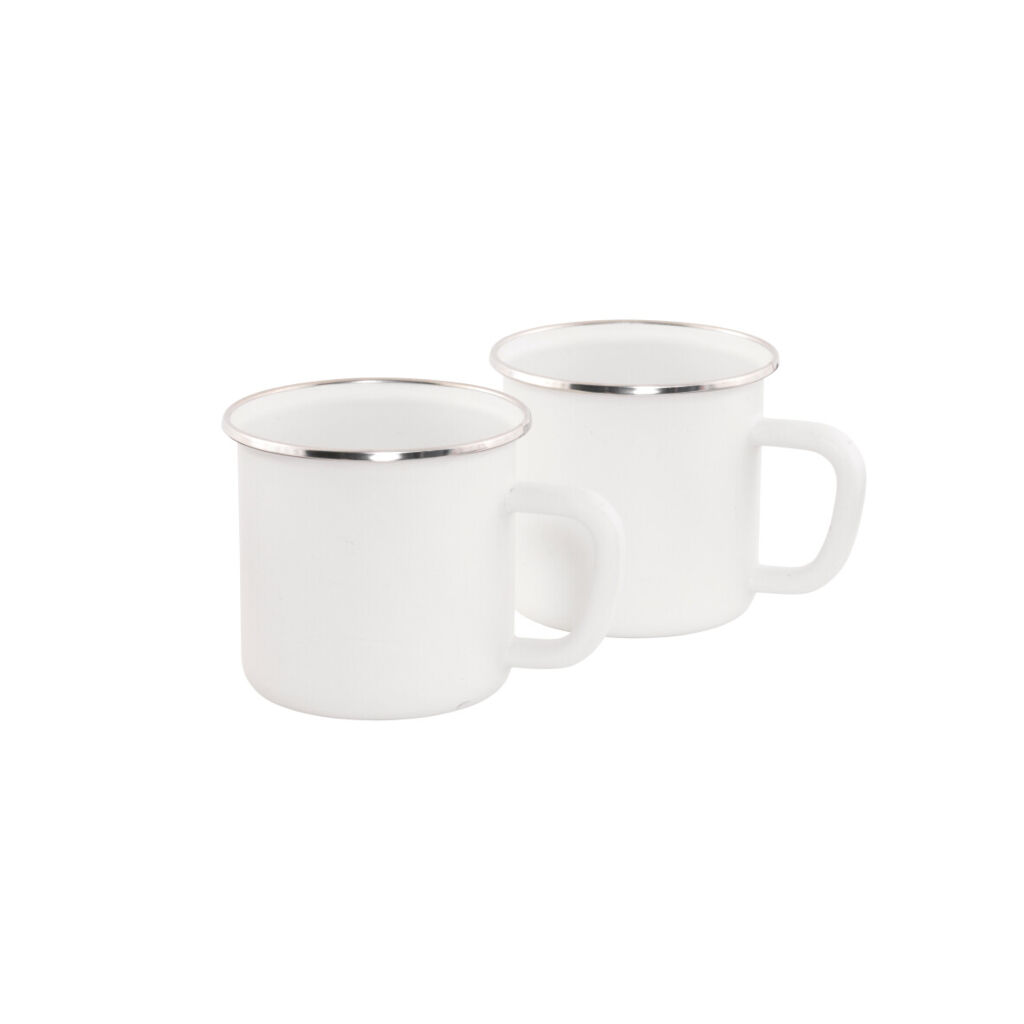 Klassiske emaljekrus i stilrent design med varmebestandigt håndtag og kant i rustfrit stål for en bedre følelse. Leveres i to-pak.