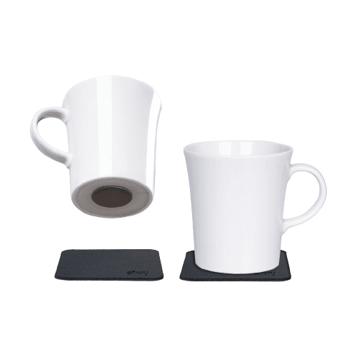 Kaffekop i porcelæn med magnetisk underside, der står utroligt stabilt på metalliske overflader eller på Silwys fastgørelsesplader. Lavet i Tyskland.