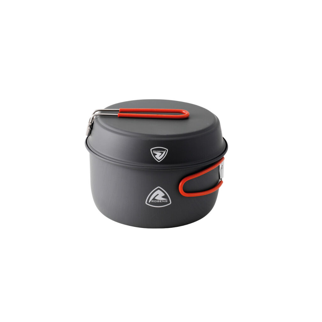 Et anvendeligt grydesæt i høj kvalitet fra Robens til madlavning på campingovnen. Håndtag i rustfrit stål med silikonebetræk og gryder behandlet med non-stick belægning.