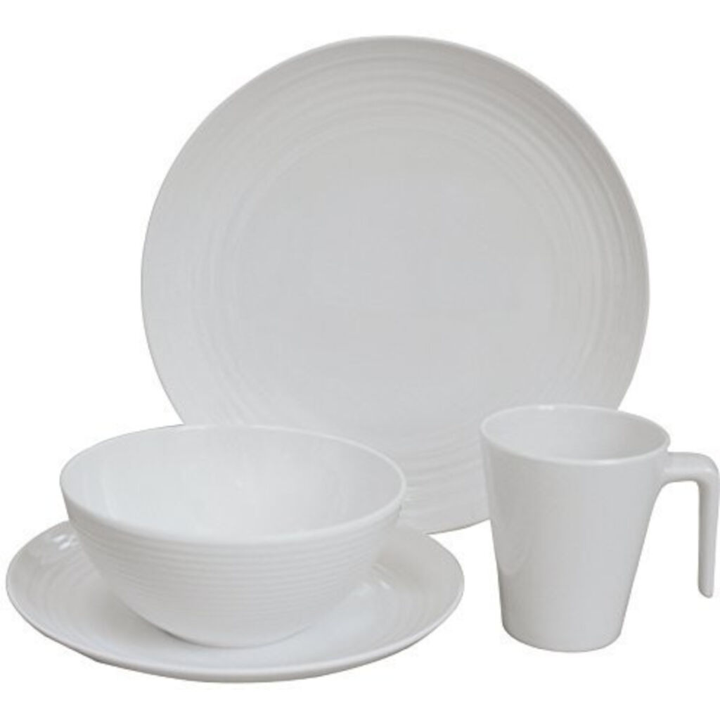 LÆS MEREServis i 16 delar för fyra personer i melamin. Melaminet är perfekt för camping genom att det är lätt, mycket tåligt samt enkelt att rengöra. Samtliga delar tål att diskas i diskmaskin.