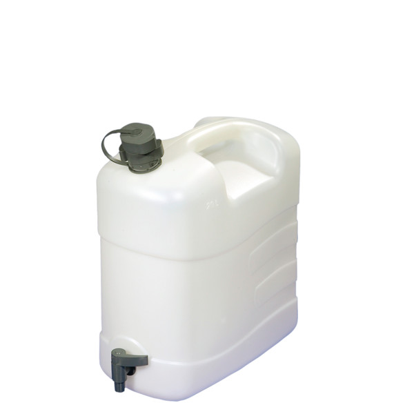 Praktisk vattenbehållare på 20 liter en s.k. Jerry Can tillverkad i Tyskland av företaget Comet. Bekvämt bärhandtag, justerbar tappkran och flexibel pip. Stort öppning underlättar snabb påfyllnad/urtappning.