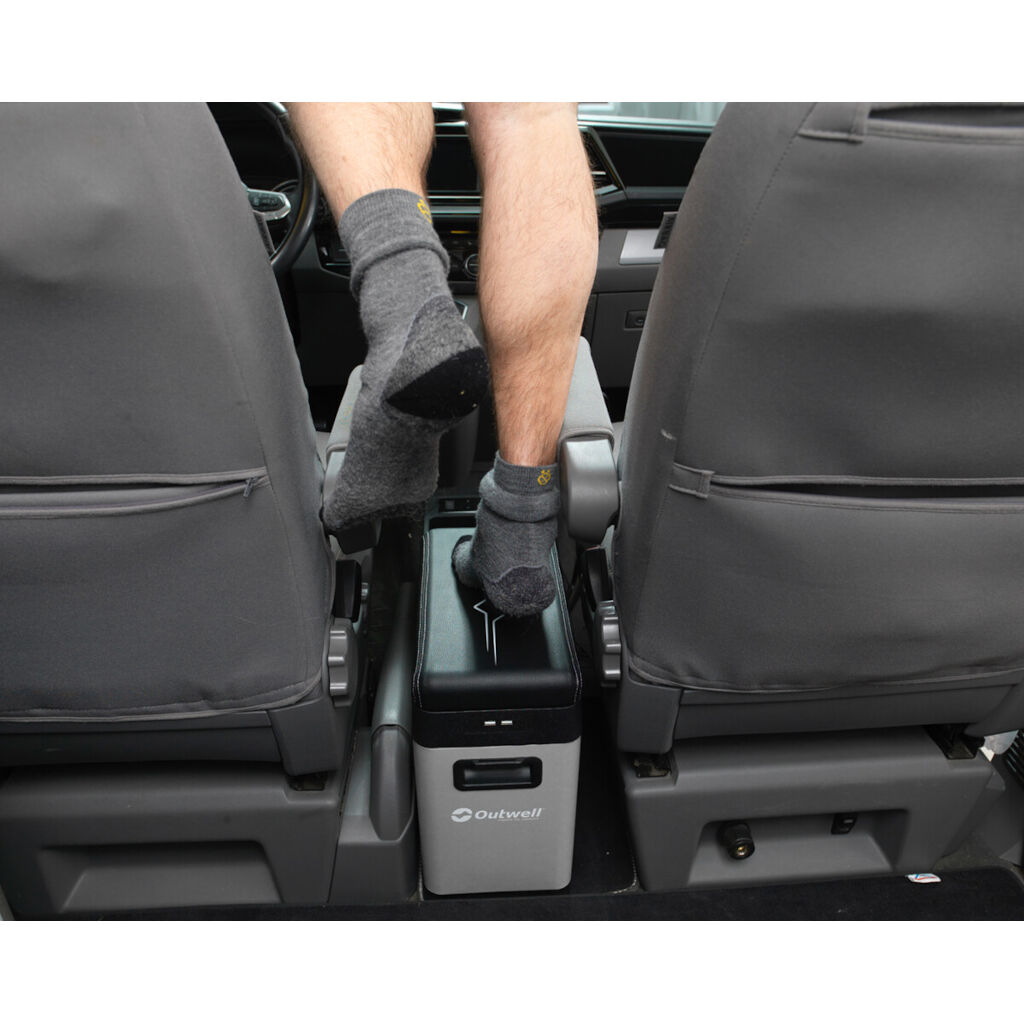 Hold maden kold og frisk uanset omgivelsestemperaturen. Outwell Arctic Chill 8 er en skræddersyet kompressordrevet køleboks, der er specielt designet til at passe mellem fører- og passagersædet i køretøjer som VW California, MB Marco Polo og lignende biler. Kompressorteknologien, der kan forsynes med strøm via 12V, reducerer strømforbruget og gør den velegnet til batteridrift, selv når bilen ikke kører. Med sit elegante design, kølekapacitet ned til -20°C og smarte funktioner som trådløs opladning og appstyring er den en ideel løsning til camping- og bilrejser.