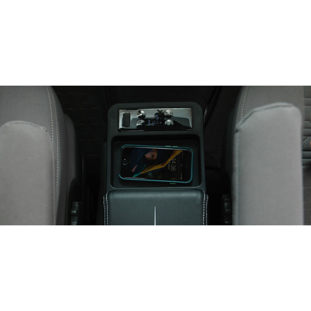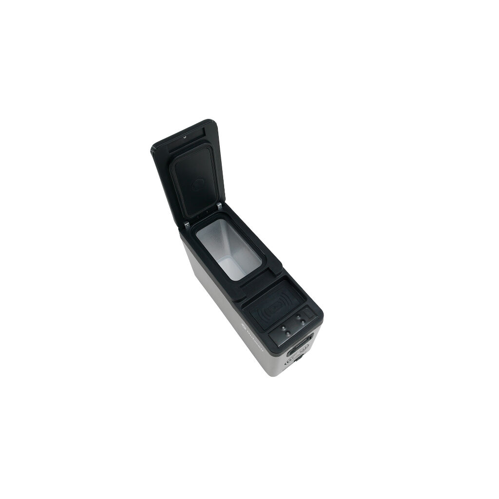 En bærbar køle-/fryseboks, der passer perfekt mellem fører- og passagersæderne i VW California, MB Marco Polo og lignende køretøjer. Med praktiske funktioner som trådløs opladning, polstret låg, 3 USB-porte m.m. er denne køleboks den perfekte ledsager både under kørslen og når det er tid til at slappe af. Leveres med monteringsbeslag til sikker placering under kørslen og gør boksen mindre følsom over for hældninger og vibrationer.