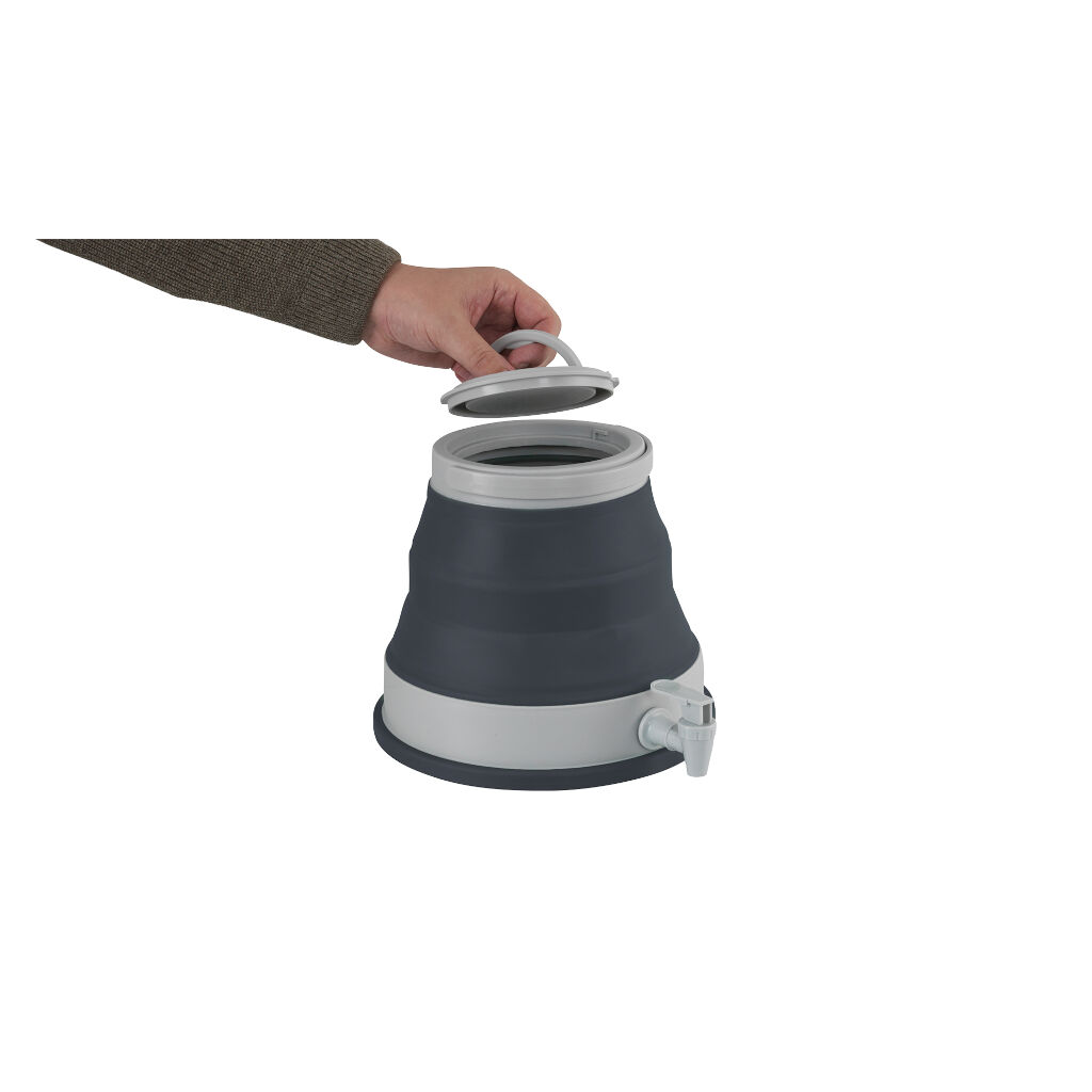 Smart sammenklappelig vandbeholder med bærehåndtag og tappehane. Fremstillet i TPE og plast, som er nemt at rengøre og giver stabilitet, så beholderen ikke klapper sammen utilsigtet. Sammenklappelig design giver en meget lille pakkestørrelse.