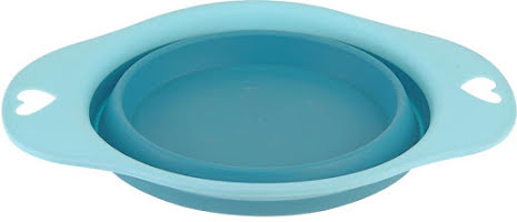 Hopfällbar hundskål i silikon med liten packstorlek. Hundskålen har liten packstorlek och två hål för exempelvis upphängning eller torkning.