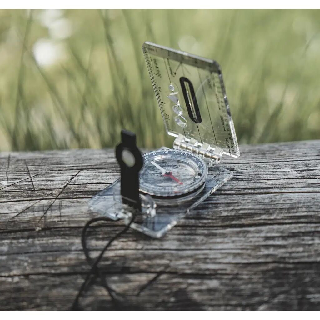 Klassisk foldekompas, der er gennemsigtigt og har lav vægt.