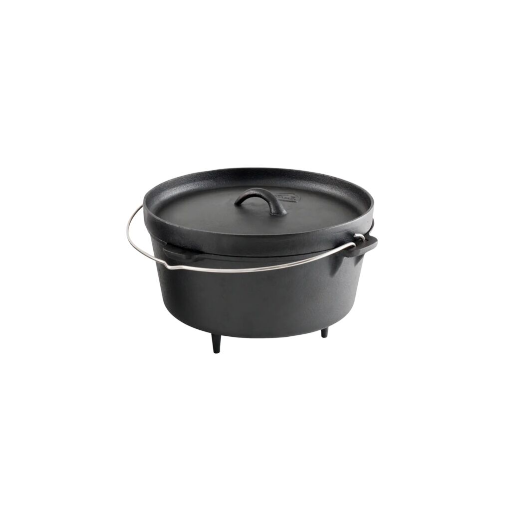 Grydegryde, der også kan bruges som ovn til både madlavning og bagning. Brug den over bålet, i ovnen eller med en kraftigere gasbrænder. Fremstillet af støbejern for at optimere varmeoverførsel og varmefordeling. Gryden er forbehandlet, så den kan bruges direkte fra pakken.