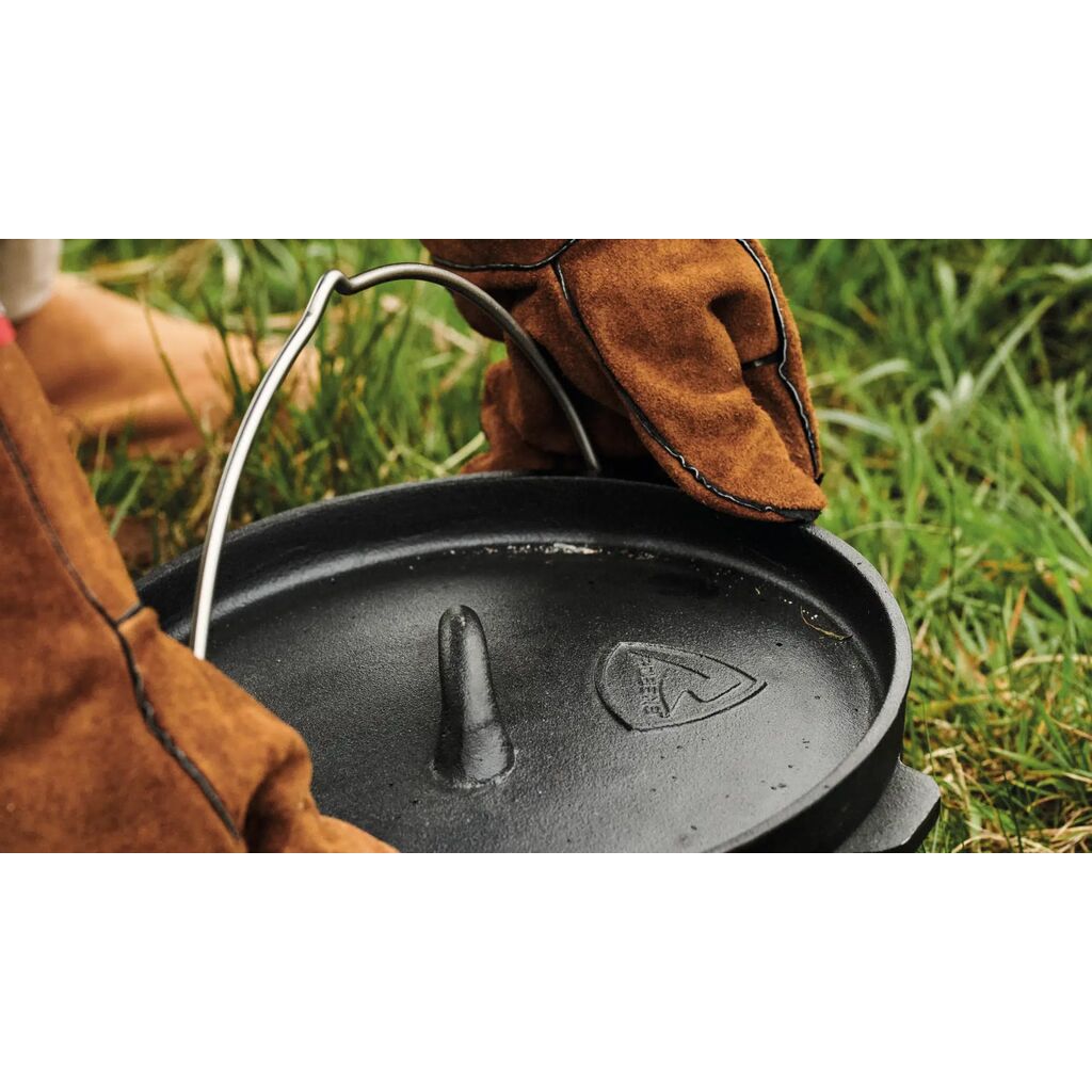 Brug denne gryde over bålet eller i ovnen. Fremstillet af støbejern for at optimere varmeoverførsel og varmefordeling.