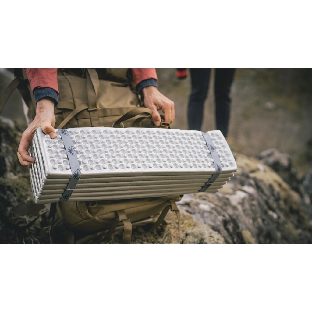 Smart, let og pakkevenlig liggeunderlag. Takket være mønsteret i liggeunderlaget har soveposens isolering plads til at udvide sig, hvilket giver bedre isolering.