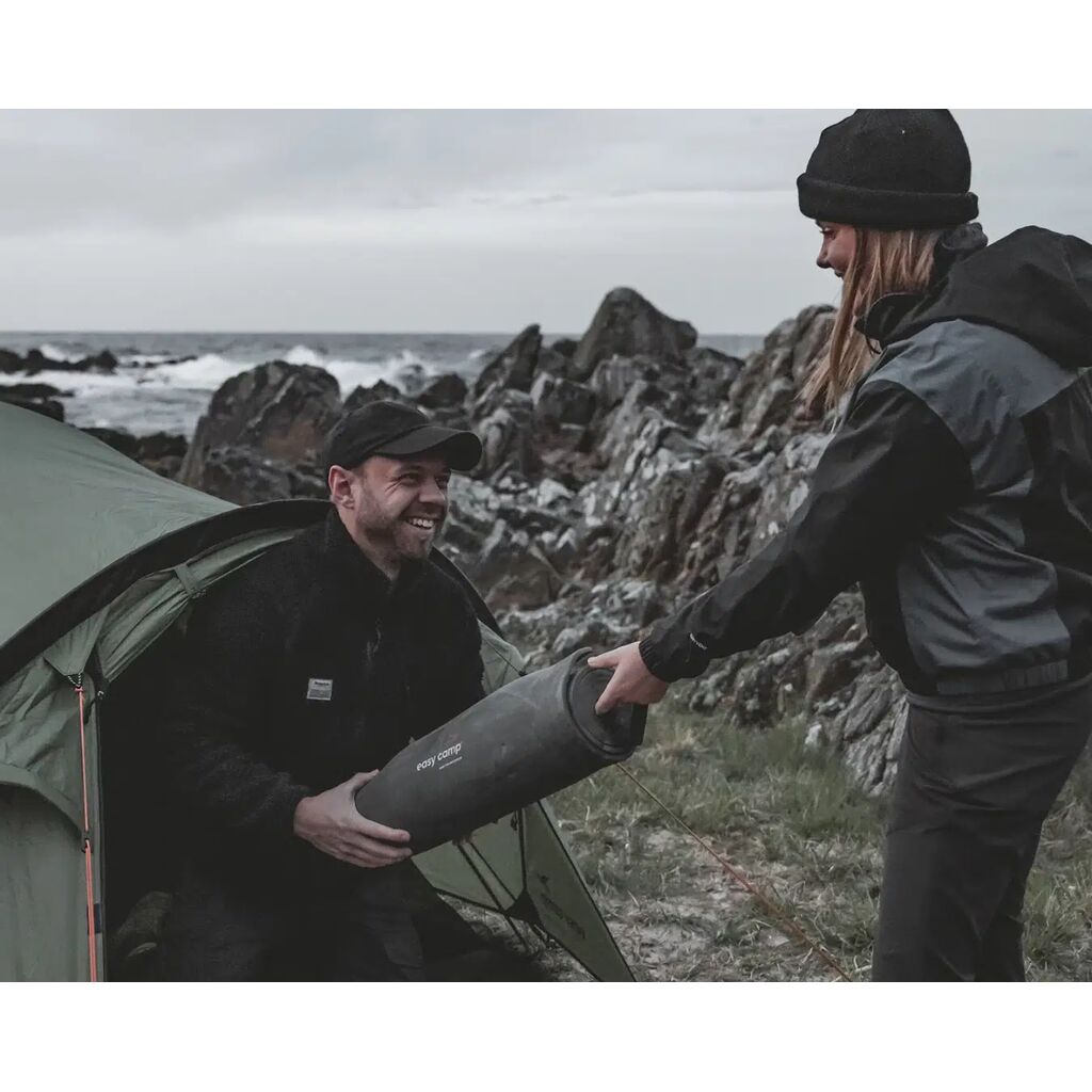 Liggeunderlag i EVA-skum, der giver grundlæggende komfort og isolering. Holdes pænt sammenrullet ved hjælp af to elastiske stropper.