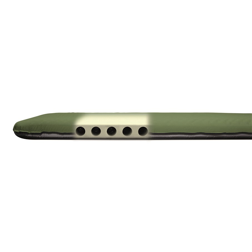 Stabilt selvoppusteligt underlag på 10 cm med god isolering mod jordkulde og en ventil, der både giver hurtigere påfyldning og lettere tømning. Bølgeformet skum giver god komfort, samtidig med at pakkestørrelsen holdes nede.