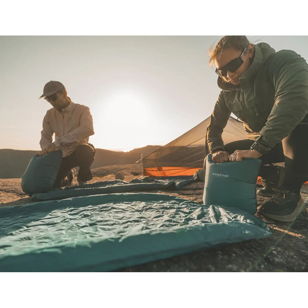 Oppusteligt liggeunderlag i meget let konstruktion, isoleret med dobbelte lag folie, hvilket gør det velegnet til brug i tre sæsoner. Bæretaske samt en let pumpepose medfølger.