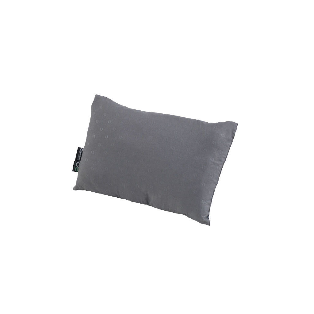 Større campingpude, der er let, PFC-fri og kompakt med et blødt, børstet yderstof og fyld af genanvendt polyester. Nem at transportere med lille pakkestørrelse (29 x 15 cm) og leveres med bærepose.