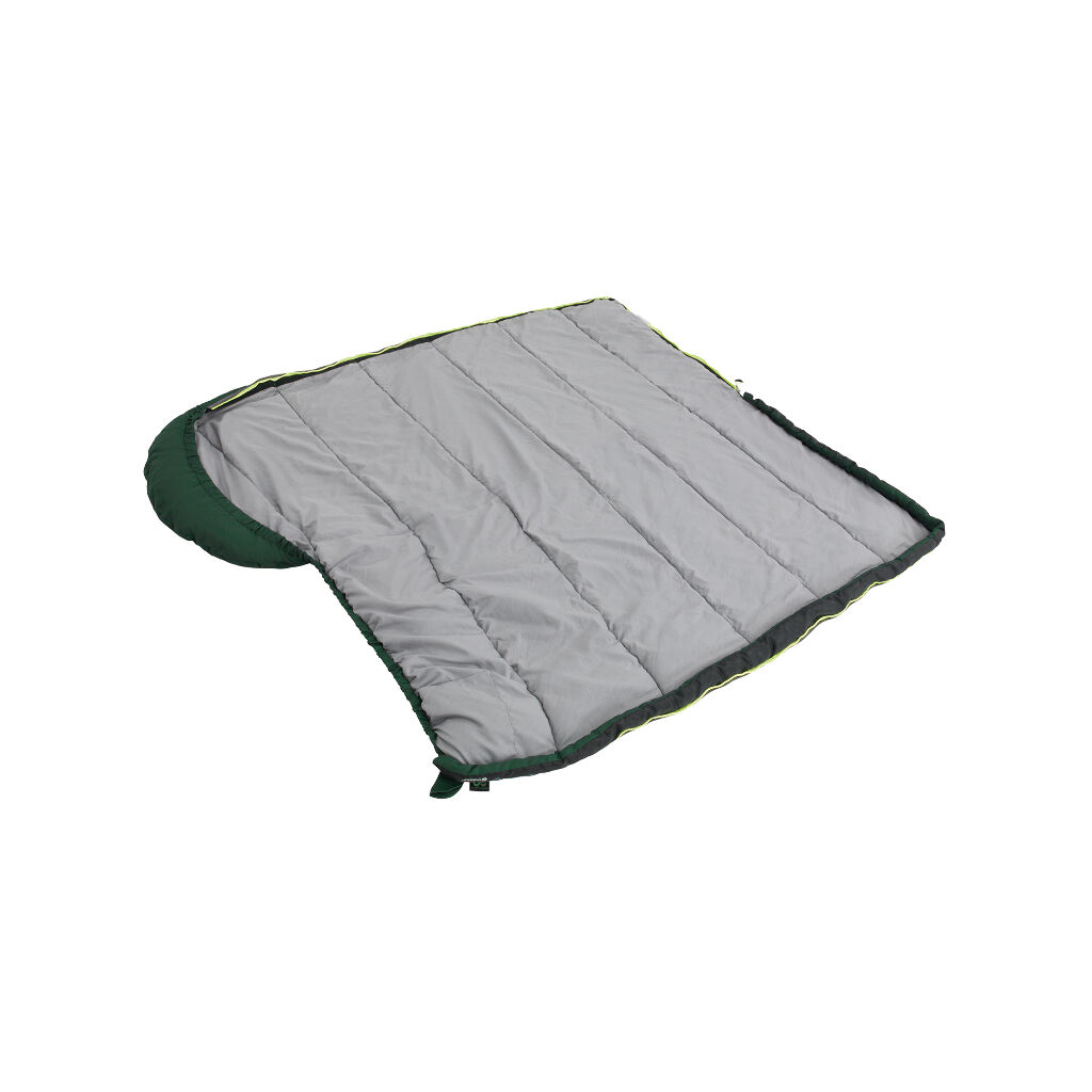 En prisvenlig campingsovepose til børn, der passer fra midt forår til tidligt efterår. To-lags fyld minimerer risikoen for kolde punkter. En justerbar hætte og en lynlås med isoleret kant beskytter mod træk og sikrer god varmekomfort, selv ved lavere temperaturer. Soveposen kan justeres i længden med fastsyede løkker og kan også åbnes helt og bruges som et tæppe. Takket være en lynlås, der kan åbnes fra bunden, er det muligt at lade fodenden stå åben for at sænke temperaturen i soveposen på varme nætter. Børstet polyester på indersiden gør den behagelig at sove i. Soveposen leveres i en kompressionspose, der gør den nem at pakke og beskytter under transport.
