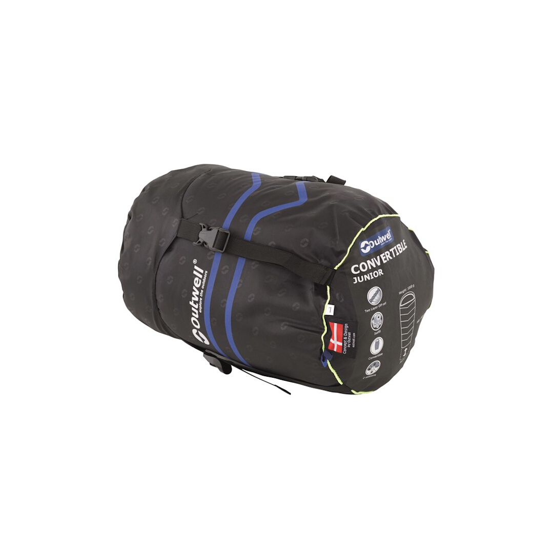 Fordelen ved at have en sovepose, der ikke er for lang til barnet, er, at der er mindre luft, der skal opvarmes i posen, og mindre overflade, der slipper kulde igennem. Derfor er Outwell Cabriolet ekstra velegnet, da det er muligt at justere længden, når barnet vokser.
