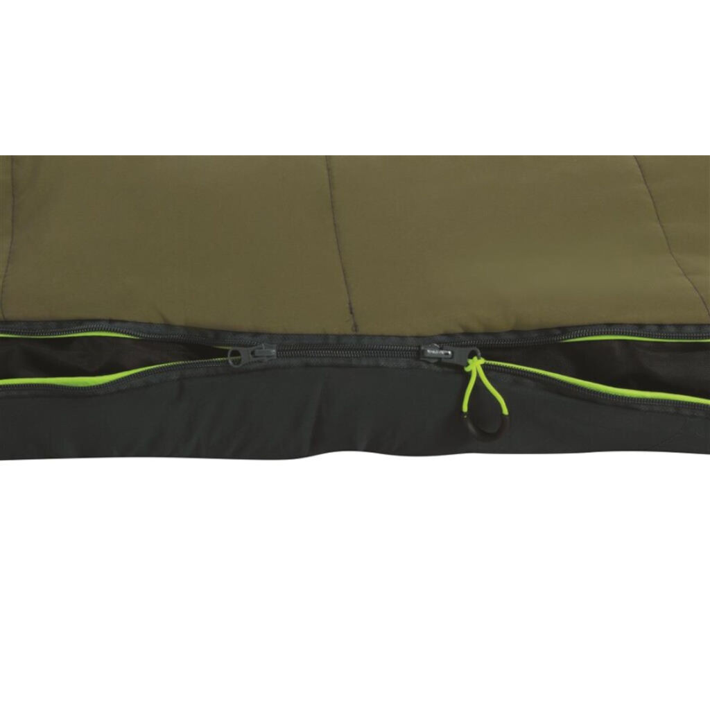 Soveposen kan bruges hele campingsæsonen fra forår til efterår. 2-lags fyld reducerer risikoen for kolde pletter. Sammentrækkelig hætte og en lynlås med isolationskant, der beskytter mod træk, giver god varmekomfort selv ved lavere temperaturer. Mikrofiber på indersiden gør den behagelig at sove i. Slidstærk polyester på ydersiden giver en sovepose, der kan modstå mange års slitage.