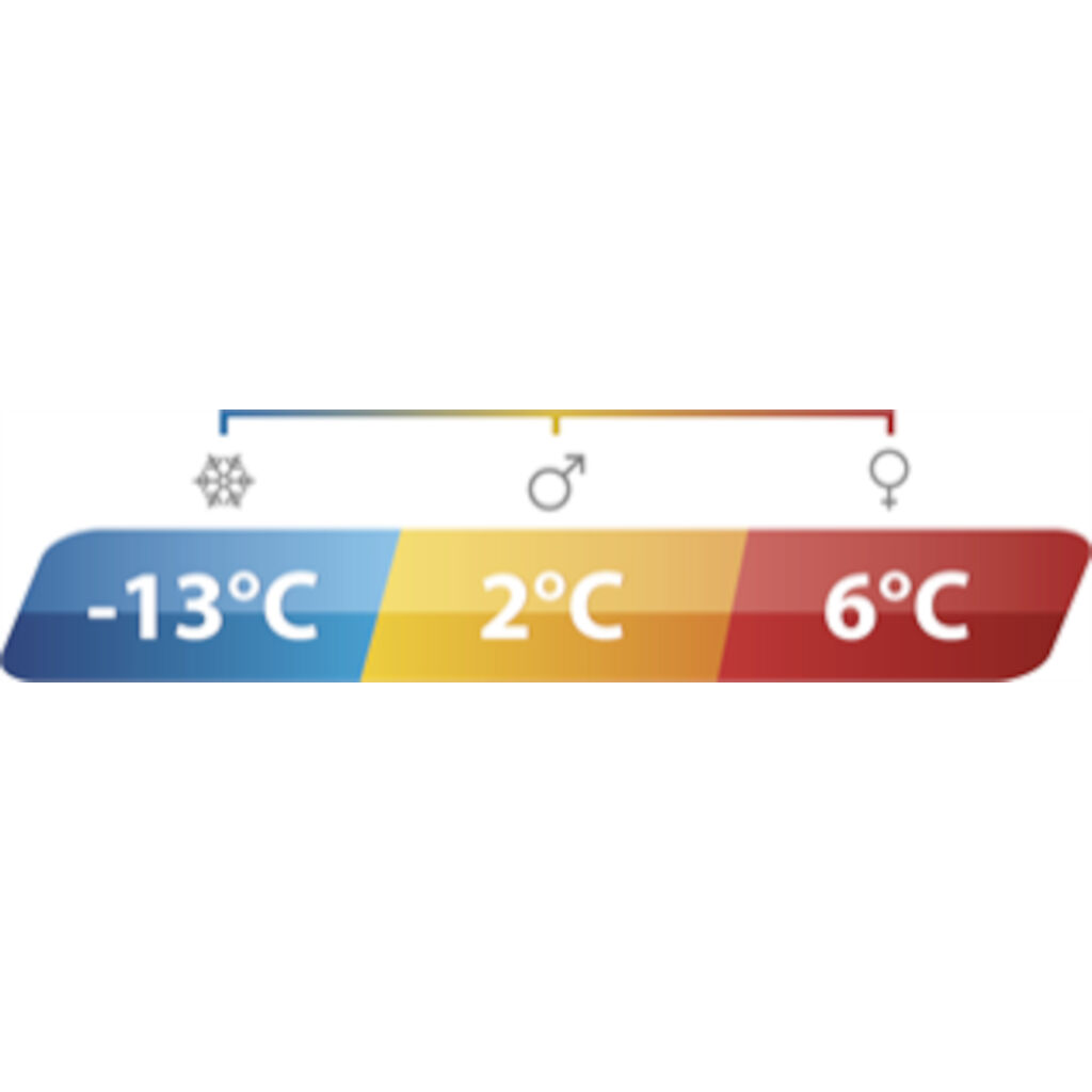 - To-vejs lynlås: kan åbnes ved fodenden for at sænke temperaturen